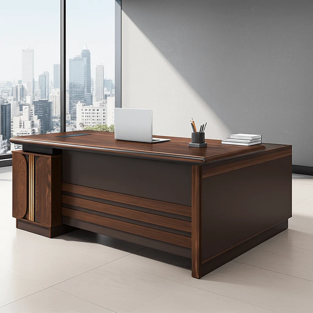Crafted from high-quality engineered wood, this executive desk is built to withstand the demands of a busy office. Its sturdy frame ensures exceptional stability, while the scratch-resistant and water-resistant finish maintains its elegant appearance even after years of daily use. The premium construction guarantees long-lasting durability and reliable performance.
