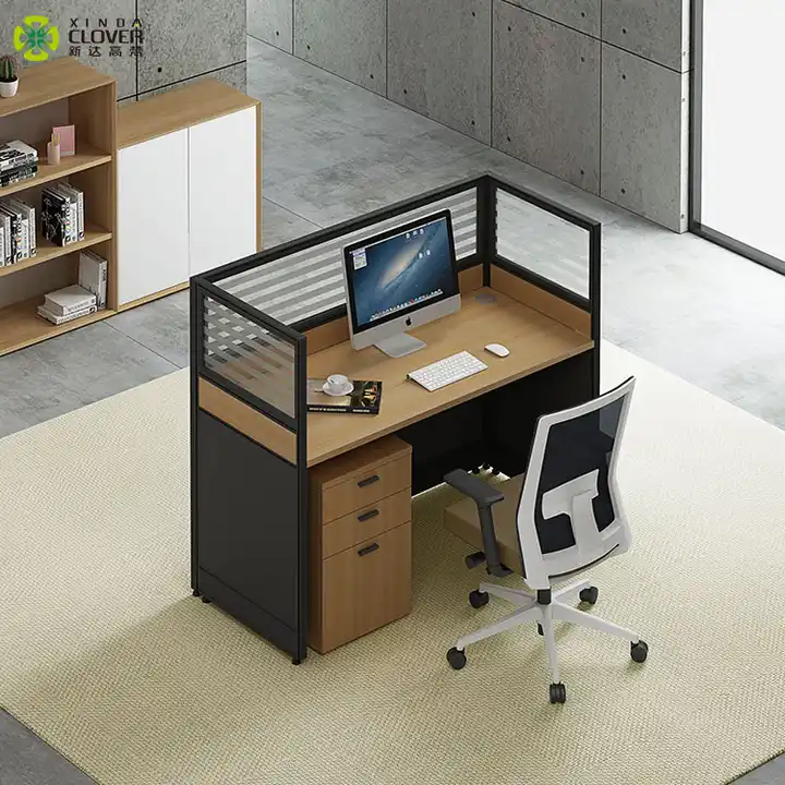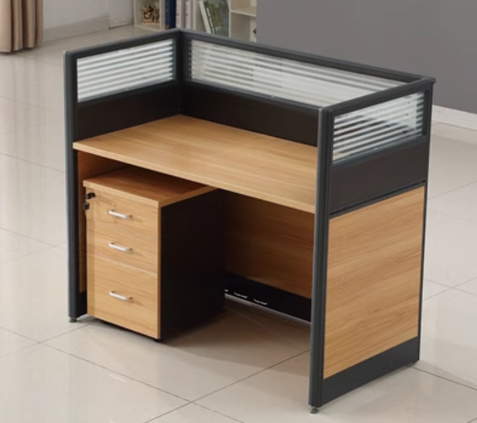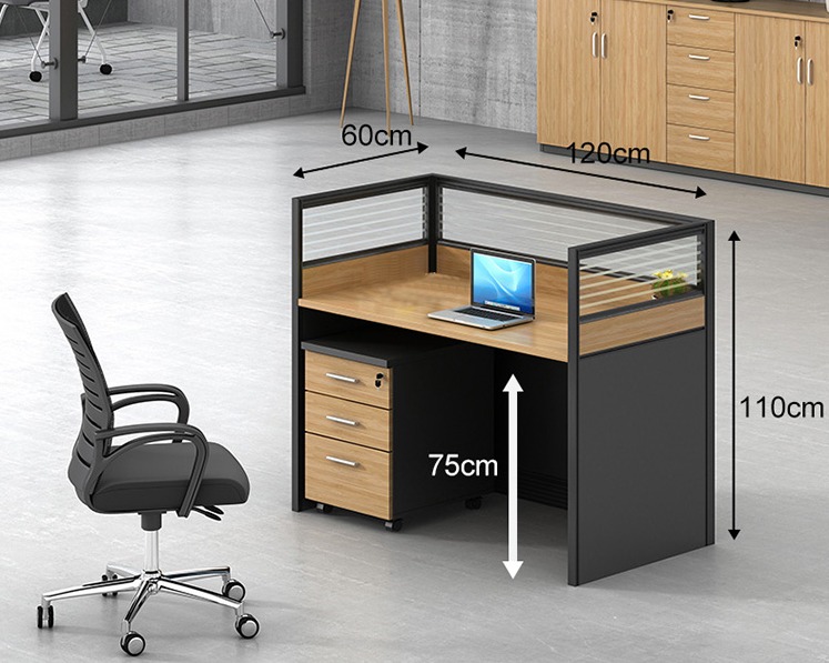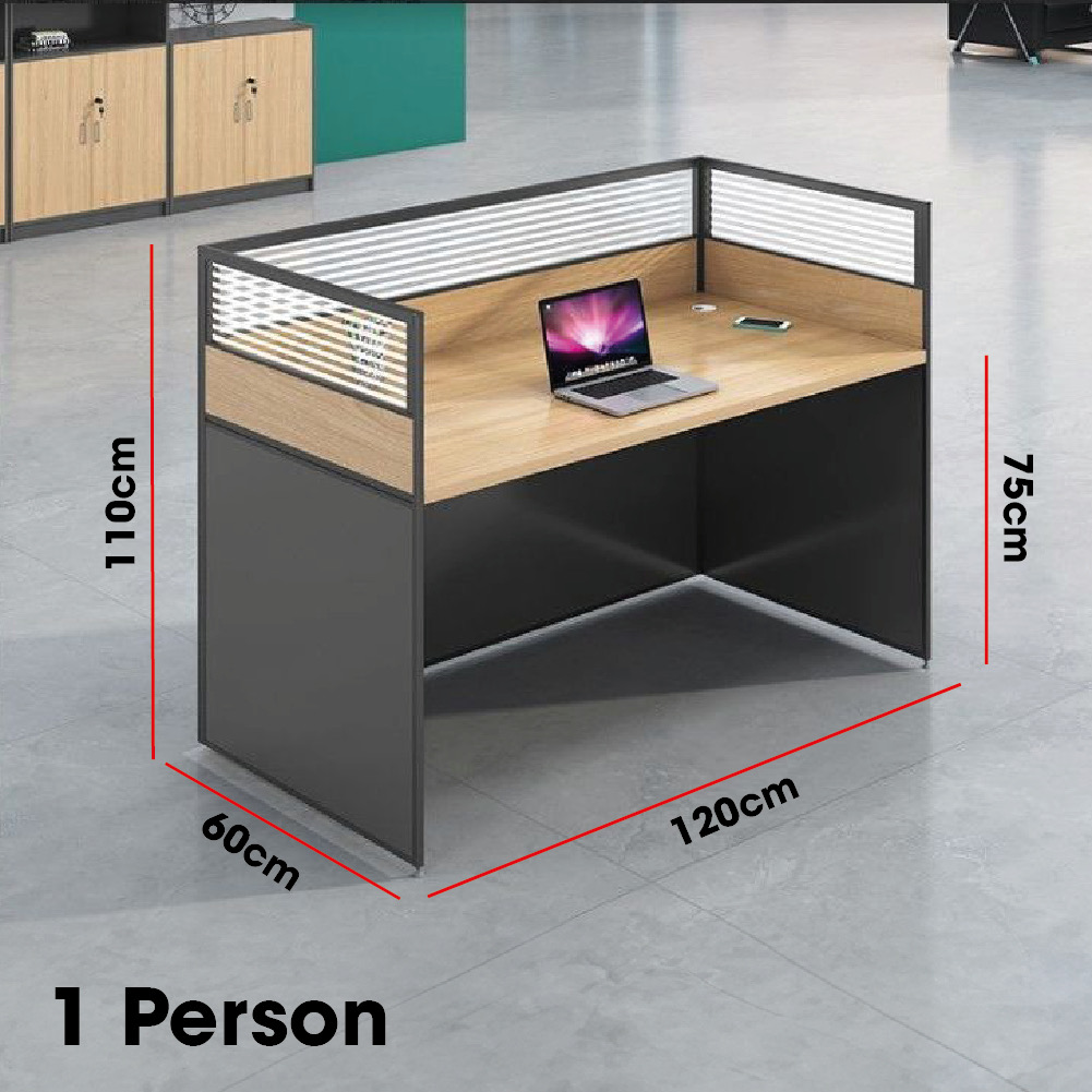 The one-way configuration provides a dedicated workstation for one user, ensuring privacy and minimal distractions. Its modular layout allows easy integration into open-plan offices or customized office arrangements.