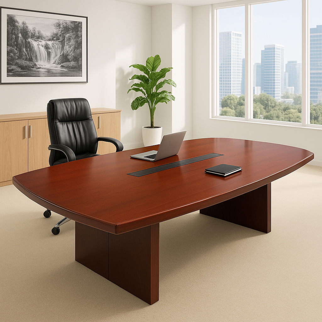 Crafted from high-quality engineered wood or composite materials, the boardroom table delivers exceptional durability and stability. The scratch-resistant, easy-to-maintain finish ensures a polished look even with frequent use.