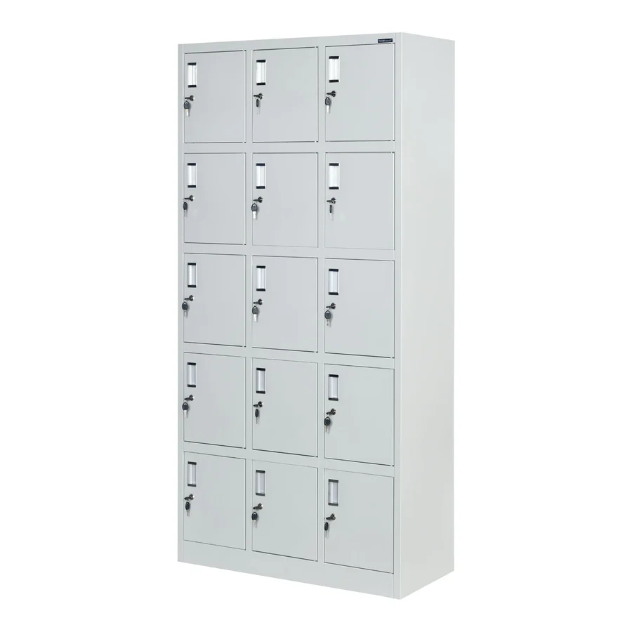 This cabinet features 15 individual lockers, each offering dedicated storage space for personal items, documents, bags, and valuables. The multi-locker configuration makes it perfect for shared work environments and staff facilities.