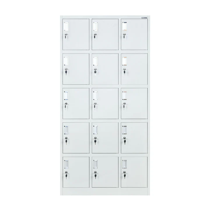 Keep belongings safe and organized with the 15 Personal Locker (Grey). Built from high-quality steel, this locker offers reliable security and durability for schools, offices, gyms, and institutions. With 15 separate compartments, it provides personal storage for multiple users while saving floor space.