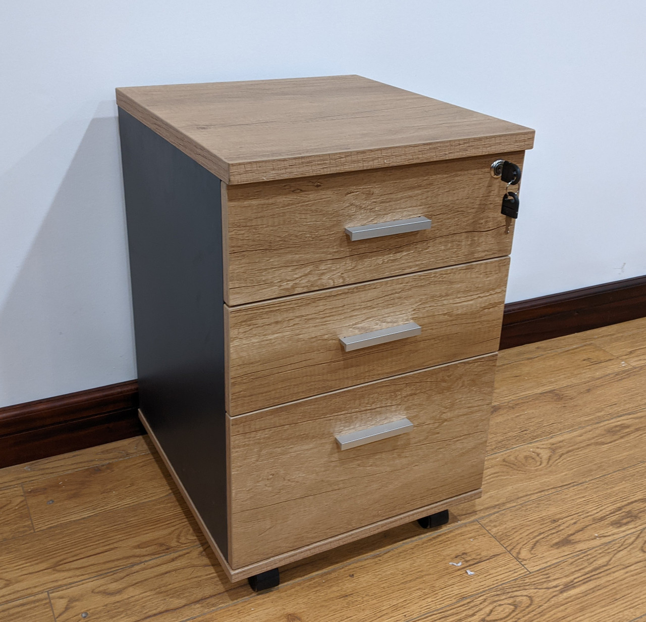 Keep your workspace organized and professional with this 3 drawer mobile pedestal in dark oak, designed to offer convenient storage, mobility, and a refined office look. Ideal for corporate offices, executive workstations, and home offices, it fits perfectly under desks while providing easy access to essentials.
