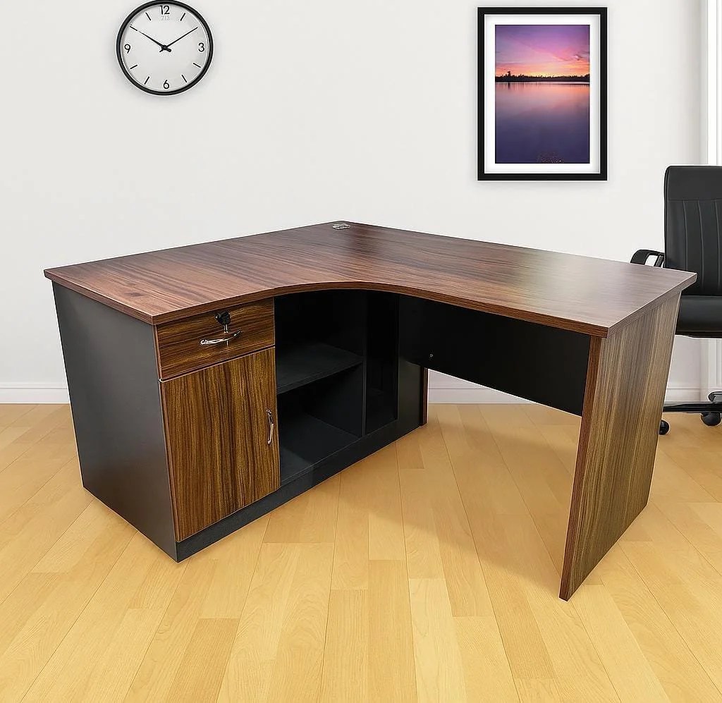 The 4.5FT L-Shaped Executive Desk is crafted to give your office a modern and executive look. Its L-shaped design not only enhances your workspace aesthetics but also maximizes corner space, creating a professional environment that promotes productivity. Available in premium finishes such as walnut, oak, wenge, or matte black, this desk complements a wide range of office interiors.