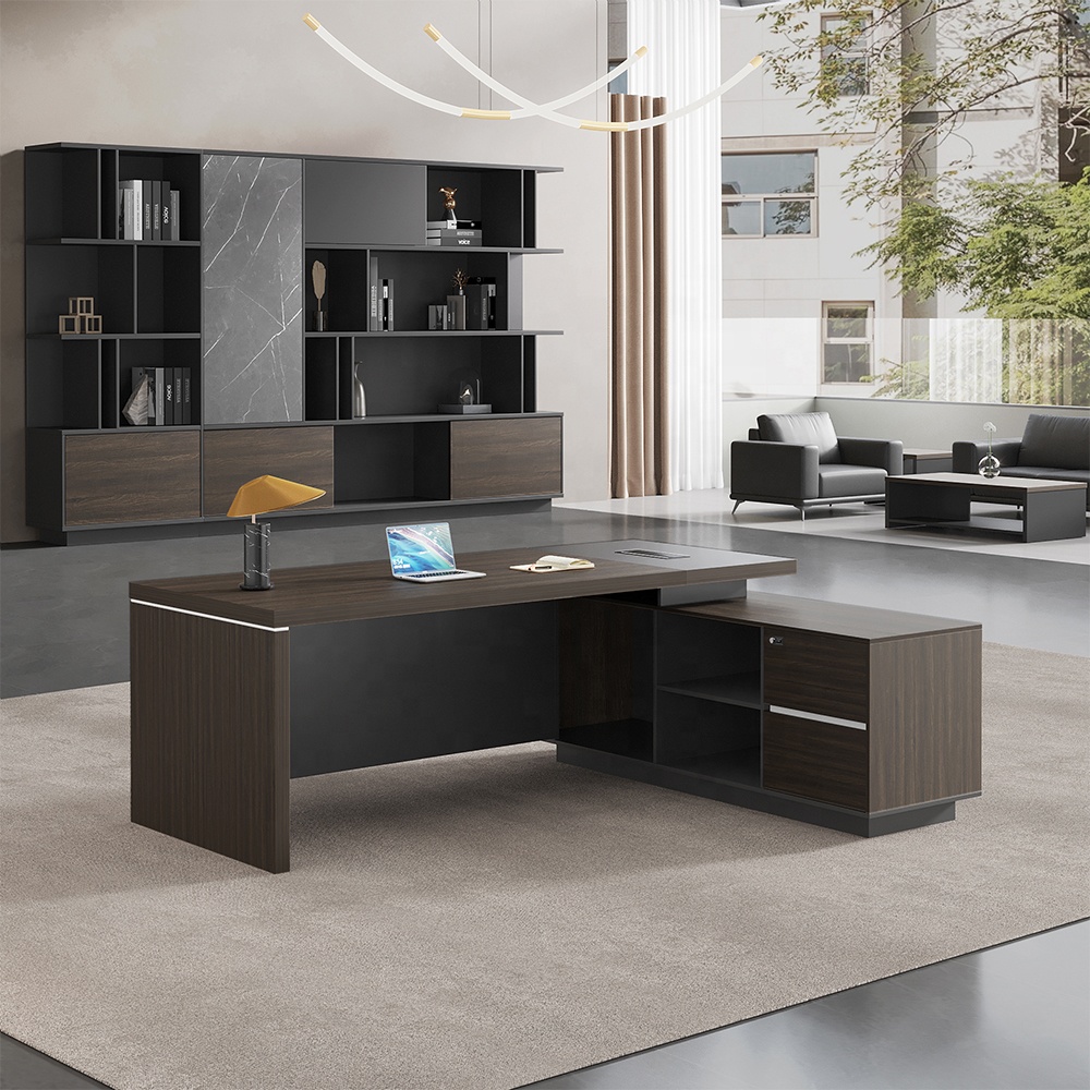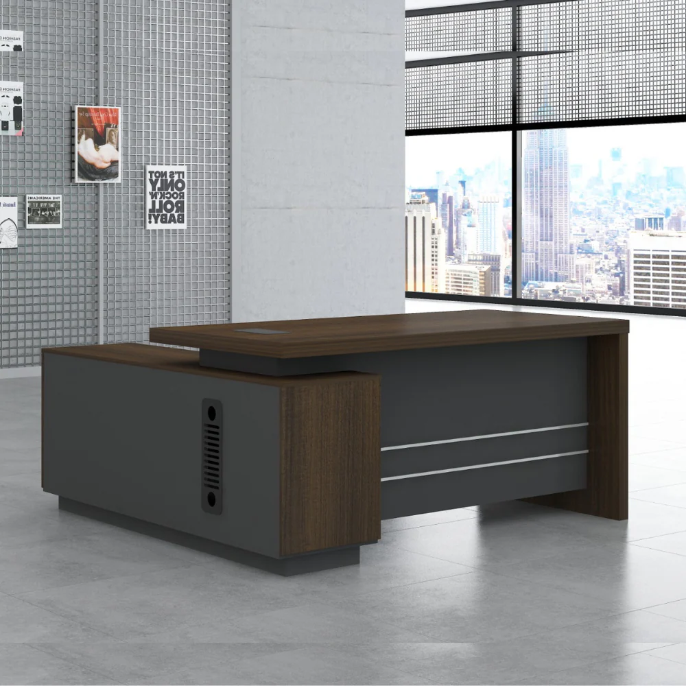 Crafted from high-quality materials, our executive desk guarantees both durability and a polished finish, radiating an aura of elegance. The robust frame ensures stability, promising a lasting investment in your professional success. Premium finishes contribute to a timeless aesthetic that complements any office setting.