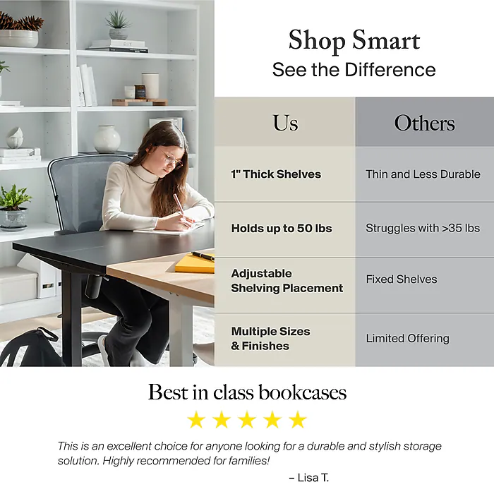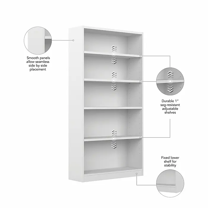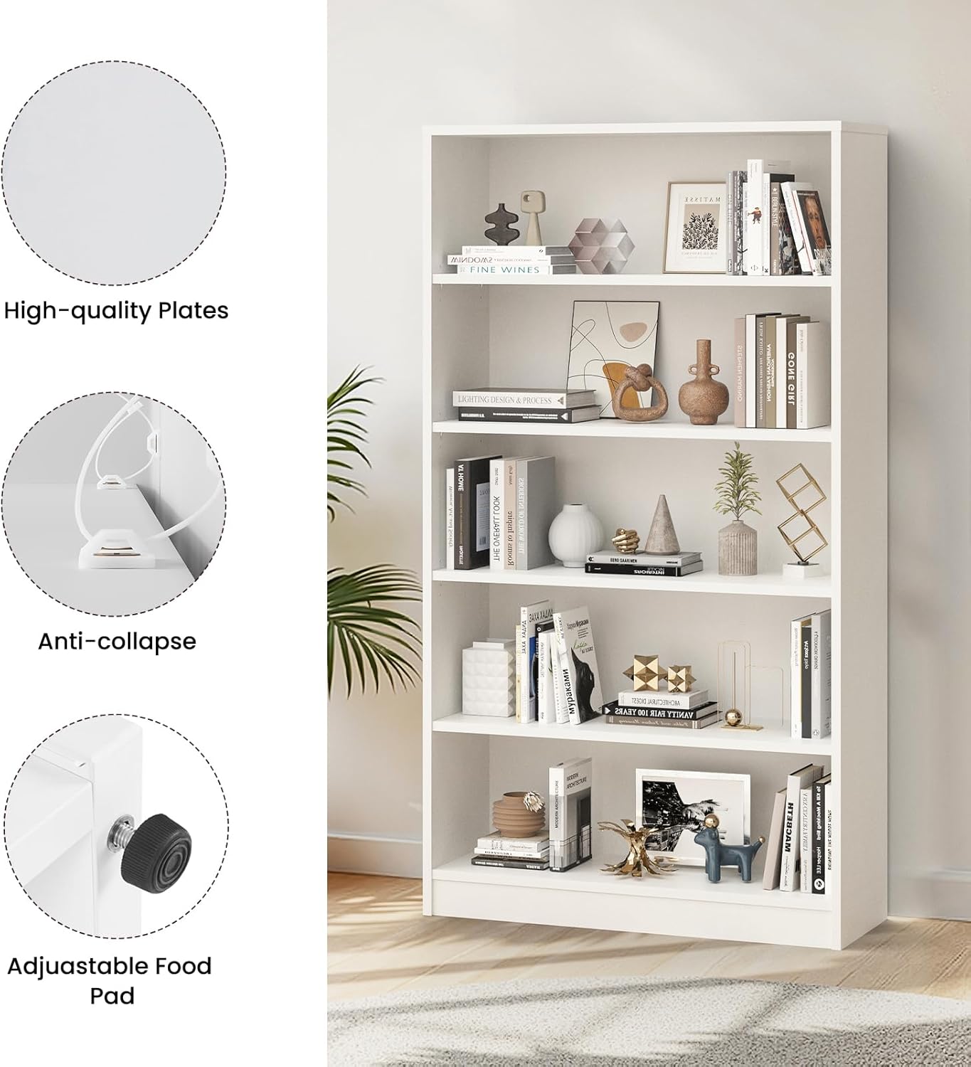 5 Spacious Tiers: Ample storage for books, décor, and office supplies.