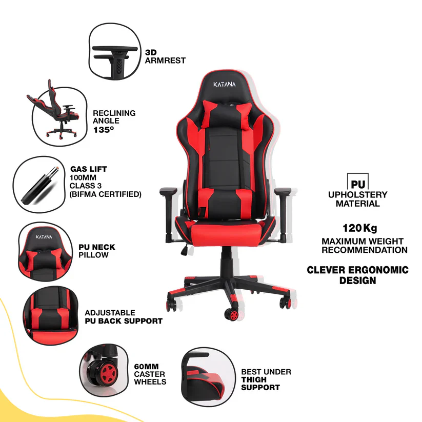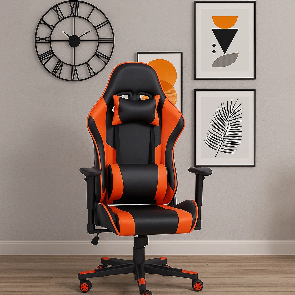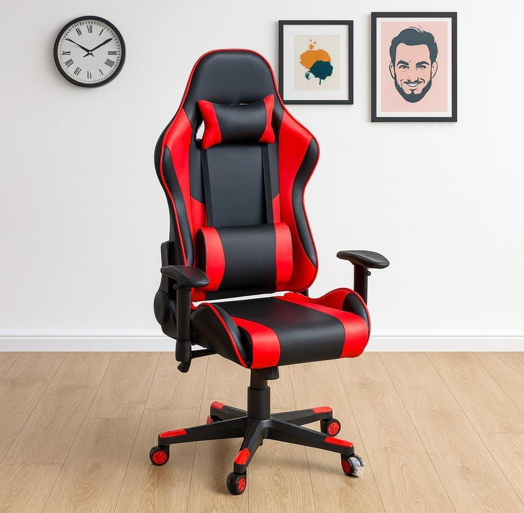 Featuring premium PU leather upholstery, the chair delivers a sleek, modern gaming look while being easy to clean and maintain. Its bold design and sharp detailing make it a perfect addition to any gaming room, streaming setup, or modern office environment.