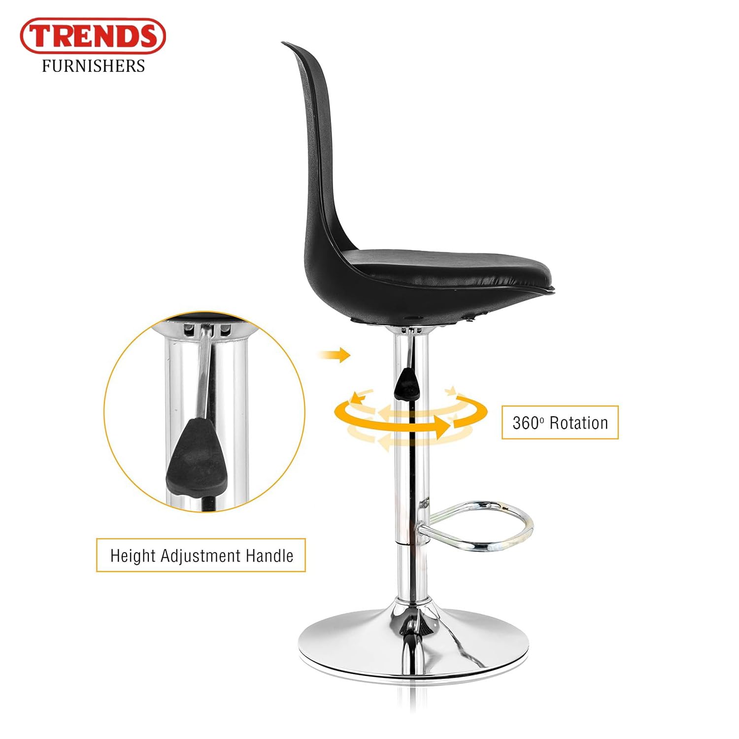 The 360-degree swivel feature allows for easy movement and conversation in social settings. Supported by a heavy-duty chrome base, the stool remains stable and secure even with frequent use. The anti-slip rubber ring underneath the base protects your floors and prevents unwanted movement.