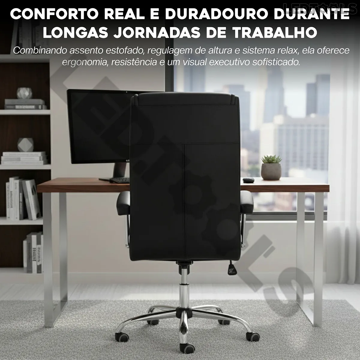 Upholstered in high-quality genuine leather or premium leatherette, the chair offers a sophisticated executive finish. The leather surface is durable, easy to maintain, and adds a refined look to any professional office setting.