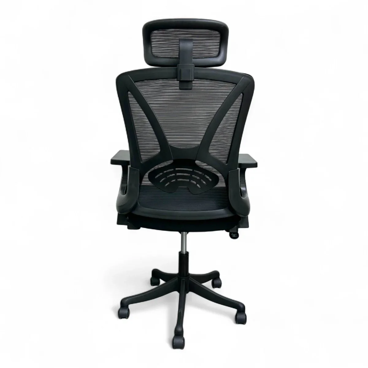 Featuring a high-back orthopedic structure, this office seat supports the entire spine, shoulders, and neck. The extended backrest helps maintain natural spinal alignment, reducing upper-back tension and neck strain during extended working sessions.