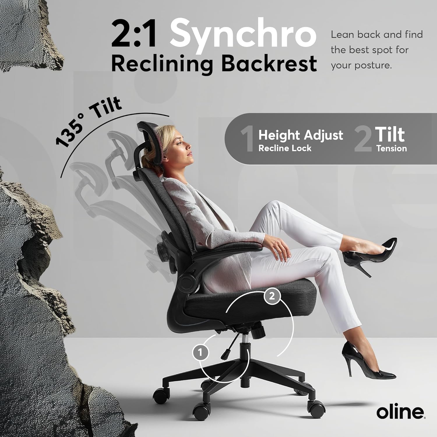 Engineered for all-day comfort, the Ergonomic Office Chair with Flipping Arms features a curved backrest that supports the spine’s natural alignment. The lumbar support cushion reduces pressure on your lower back, while the breathable mesh fabric enhances airflow, keeping you cool during long work sessions.