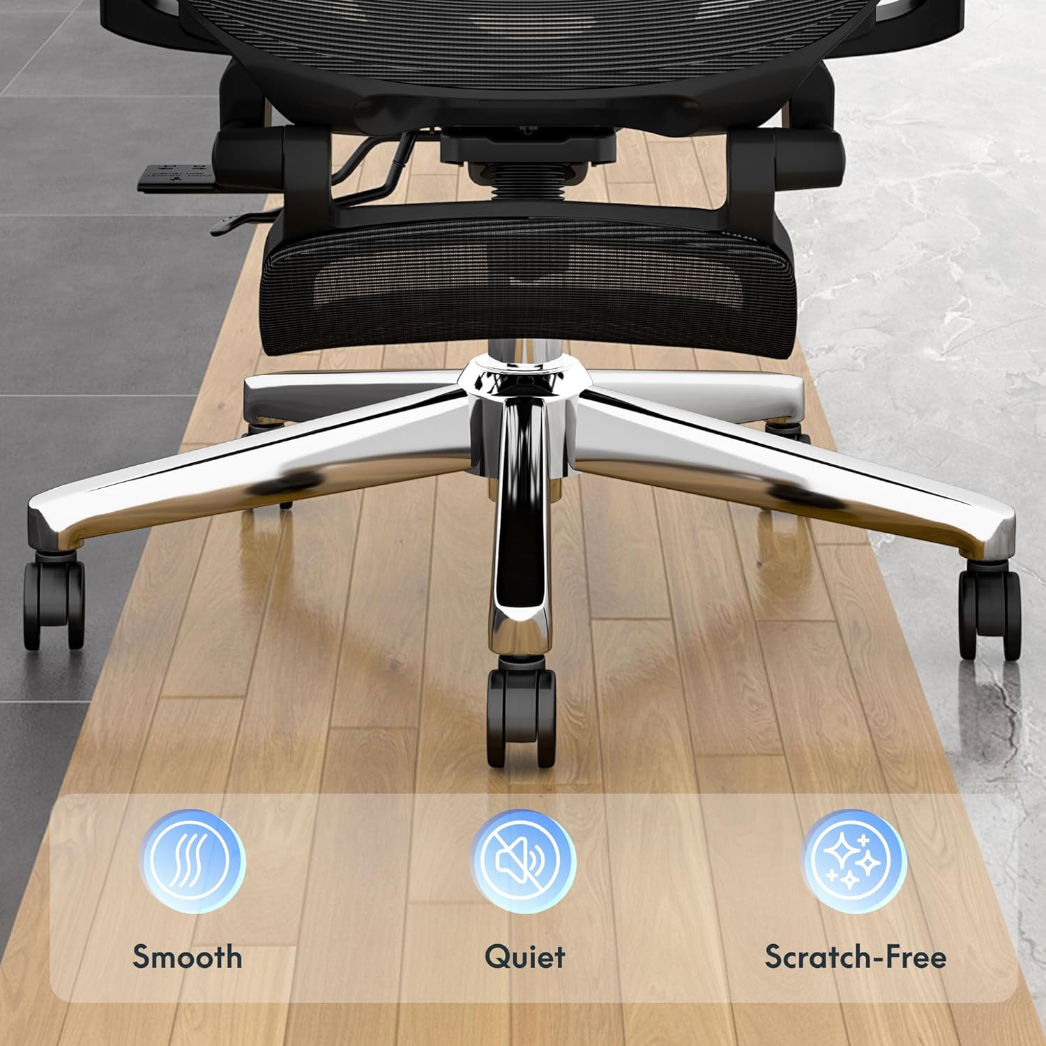 360° swivel with smooth caster wheels