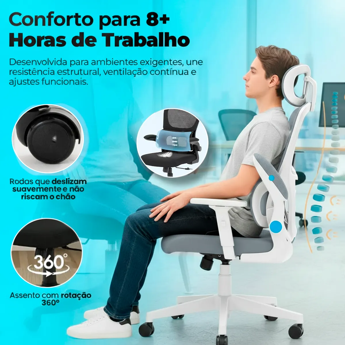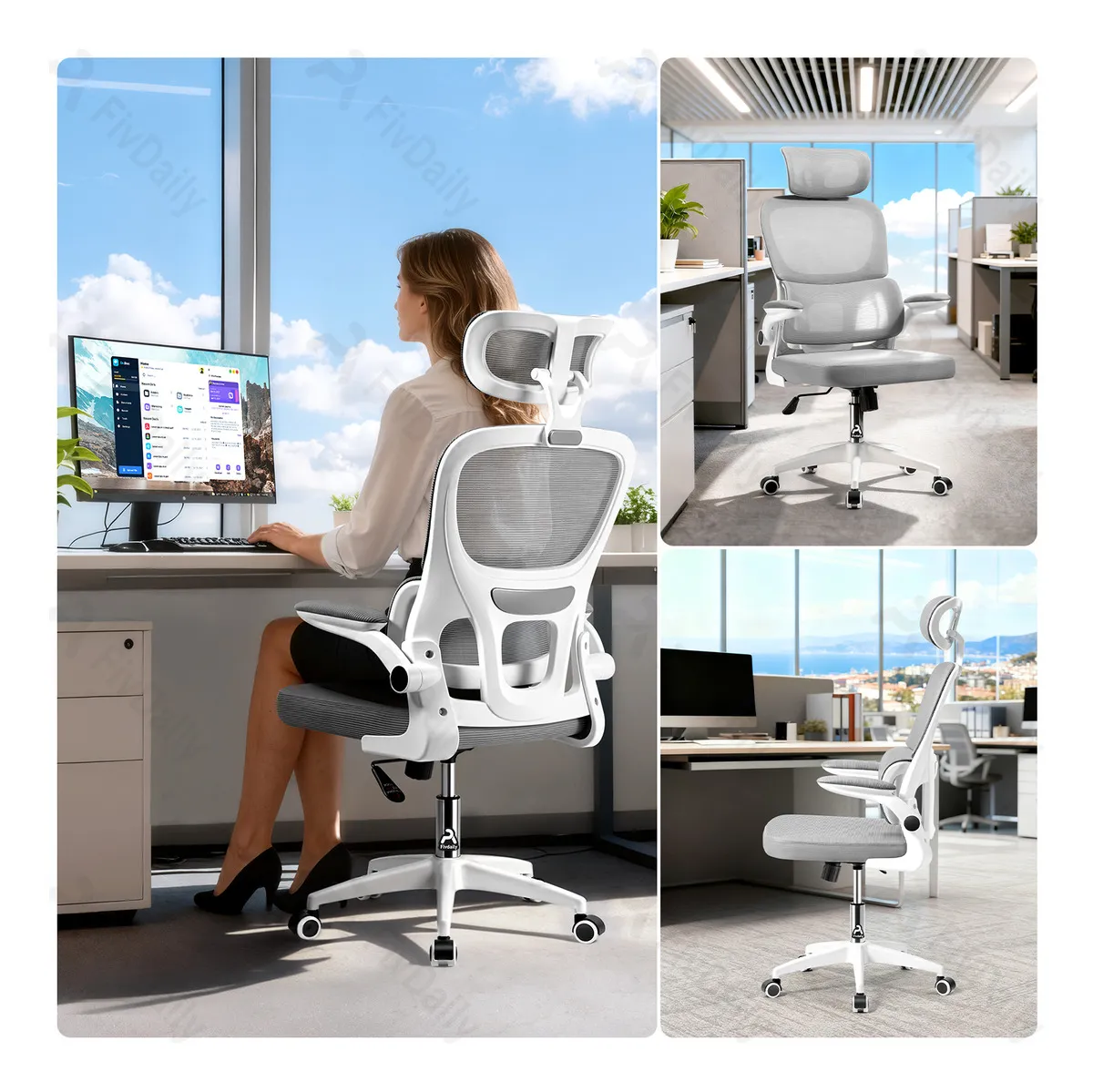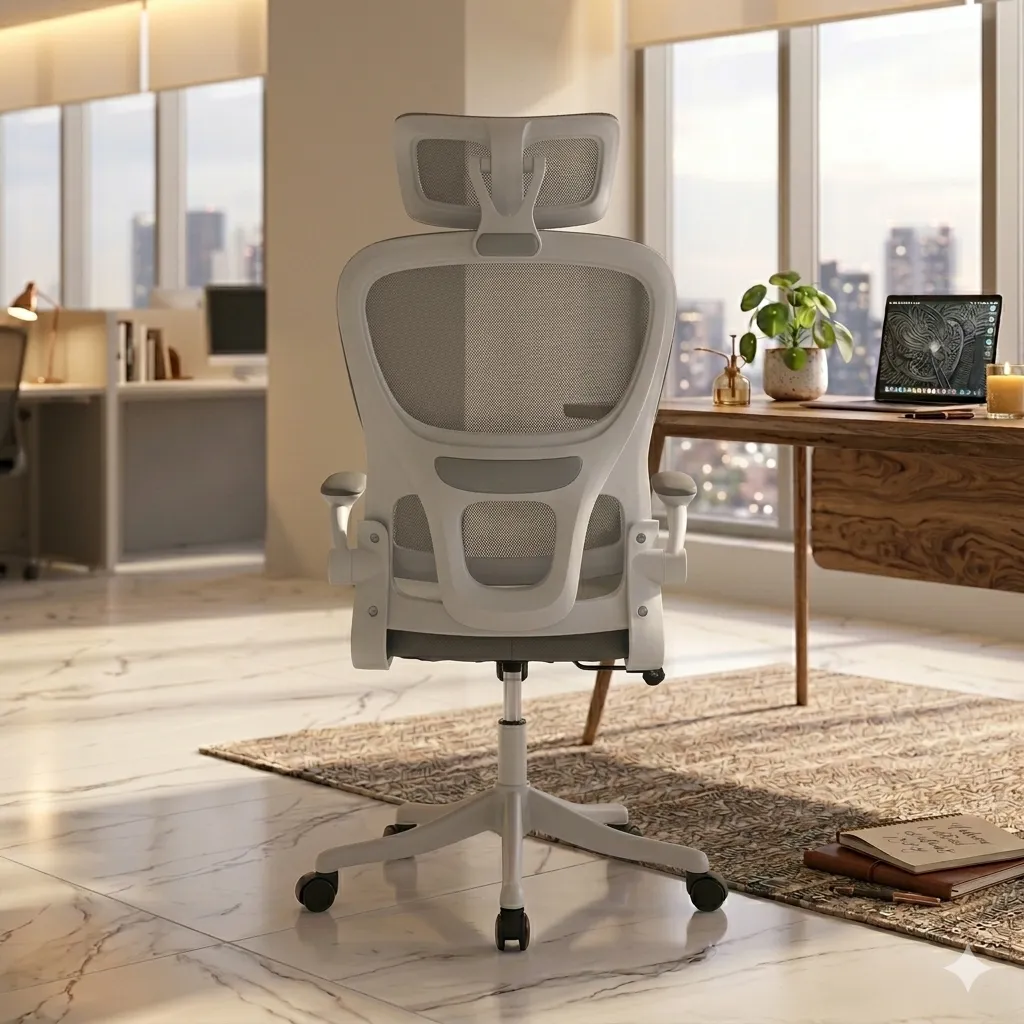 Designed with an ergonomic orthopedic structure, the chair supports the natural curve of the spine and promotes proper sitting posture. The contoured backrest and built-in lumbar support help reduce pressure on the lower back, neck, and shoulders, making it ideal for professionals who spend long hours working at a desk. Proper ergonomic support can significantly reduce fatigue and discomfort during extended work sessions.