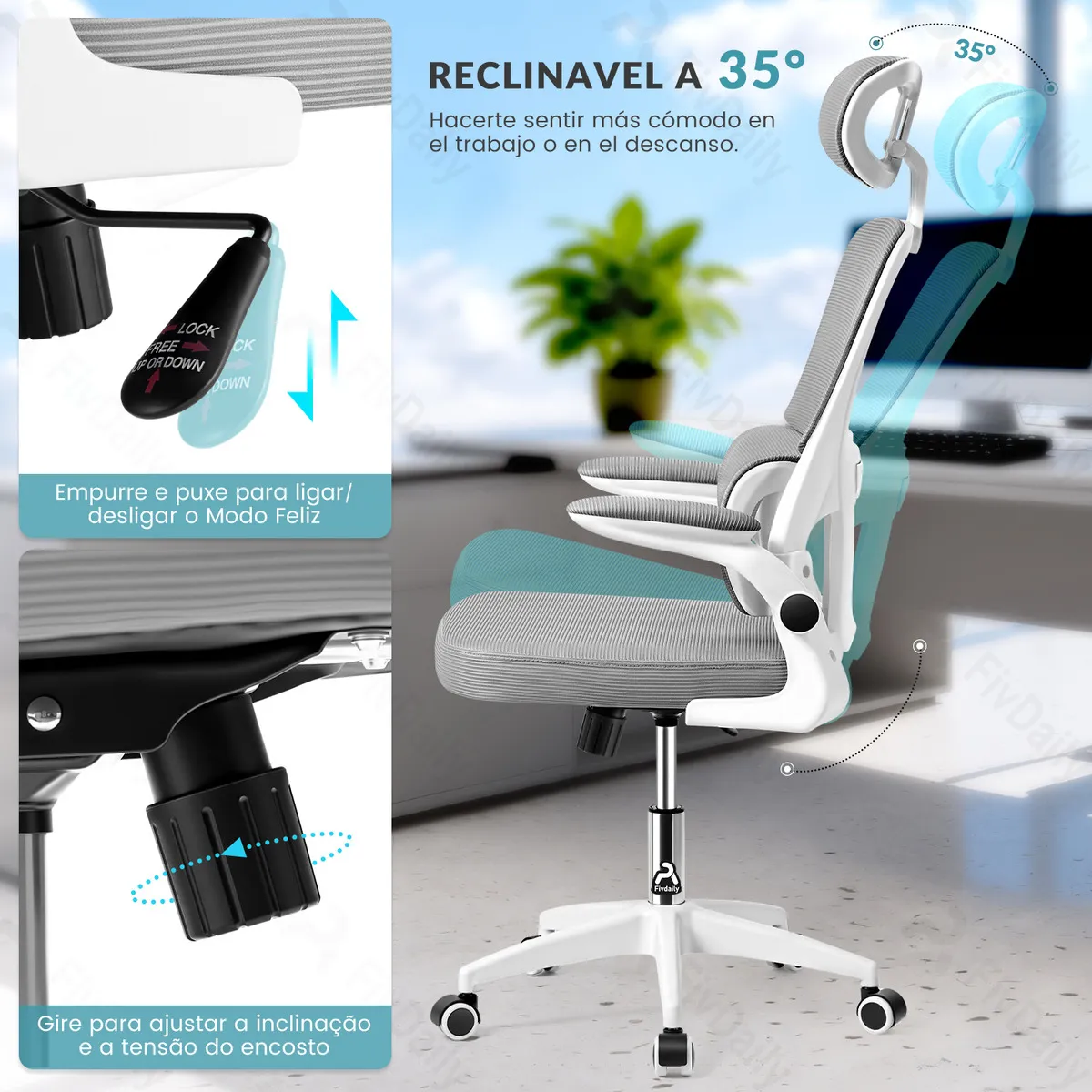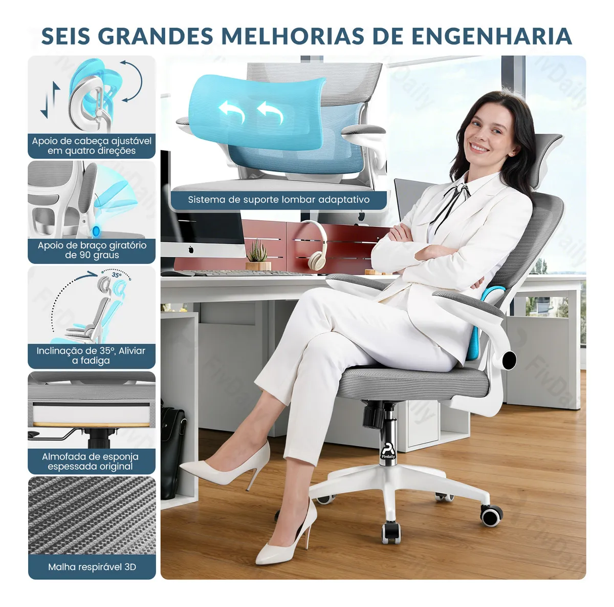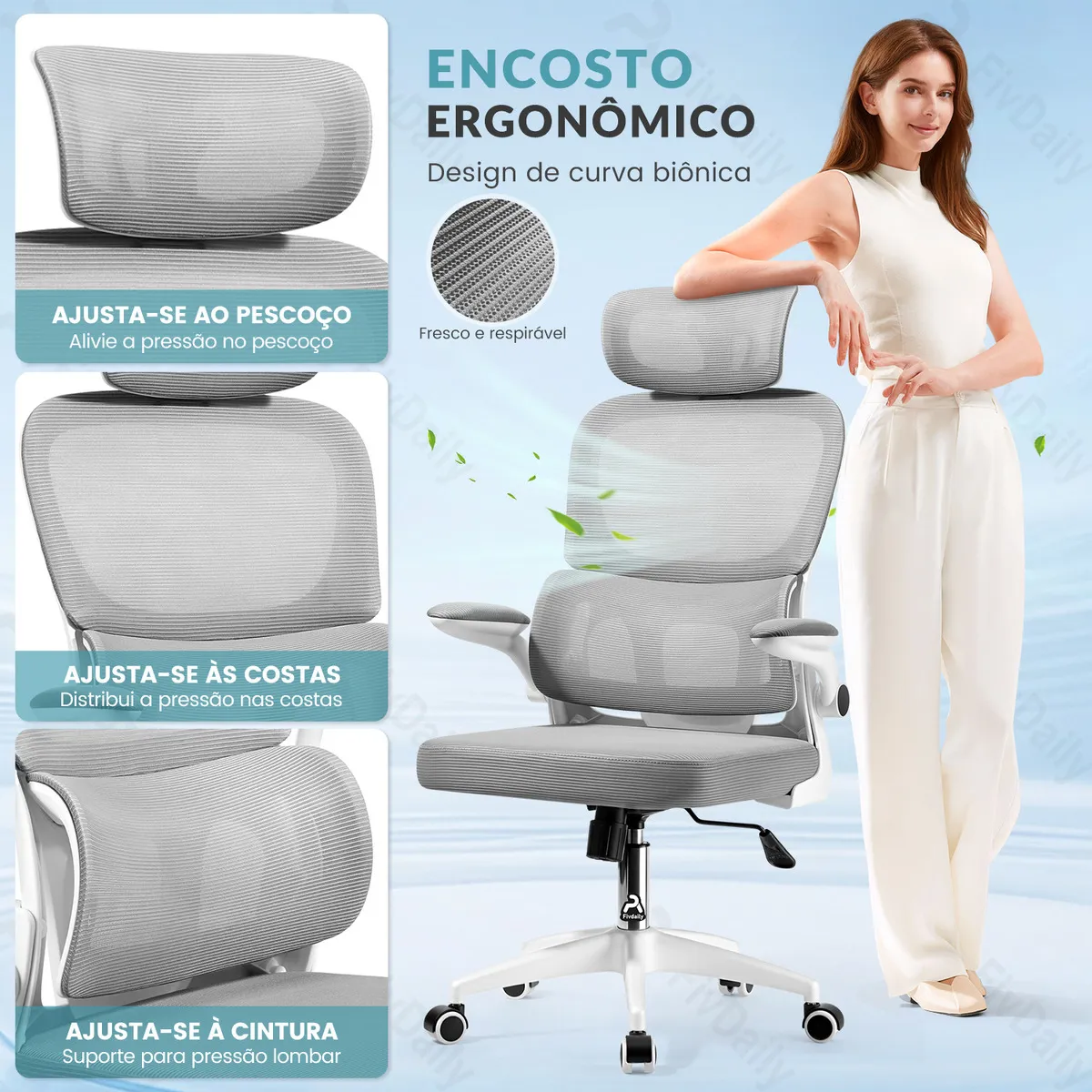 Designed with an ergonomic orthopedic structure, the chair supports the natural curve of the spine and promotes proper sitting posture. The contoured backrest and built-in lumbar support help reduce pressure on the lower back, neck, and shoulders, making it ideal for professionals who spend long hours working at a desk. Proper ergonomic support can significantly reduce fatigue and discomfort during extended work sessions.