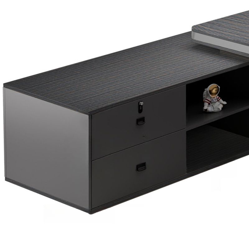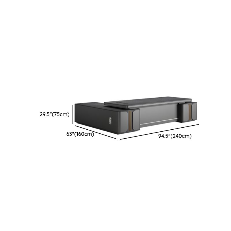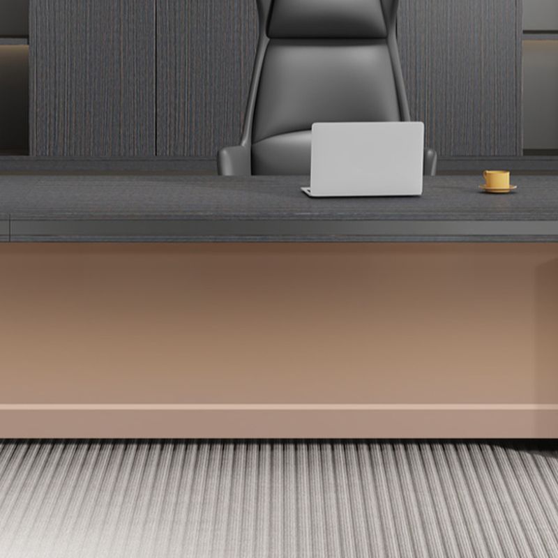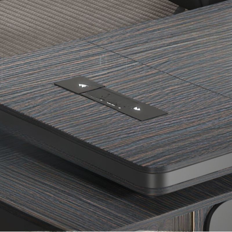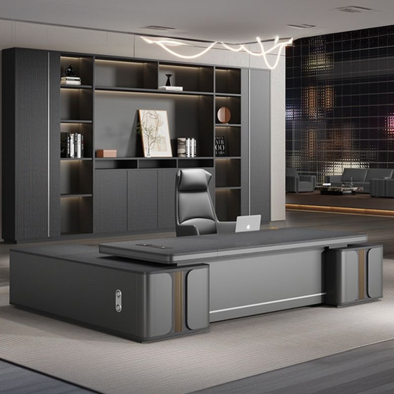 The wide tabletop provides ample space for laptops, monitors, documents, and office accessories. Its well-designed layout supports multitasking and maintains a clean, organized executive workspace.