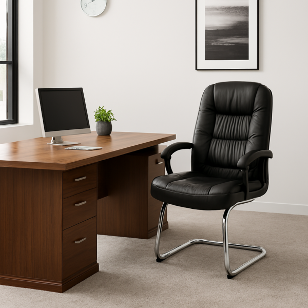 Built with a strong metal or chrome cantilever frame, the Executive Office Visitor Chair offers excellent stability and durability. The sled-style base provides a slight flex for added comfort while maintaining a firm and balanced seating experience.