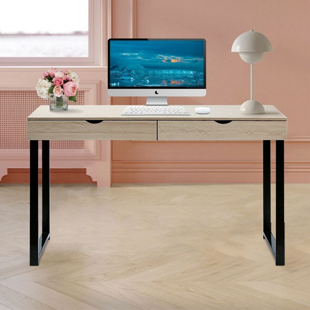 The desk features integrated drawers that offer convenient storage for notebooks, documents, stationery, and personal items. These drawers help maintain an organized workspace while keeping essential items within easy reach.