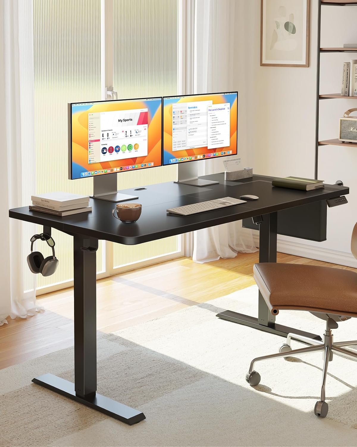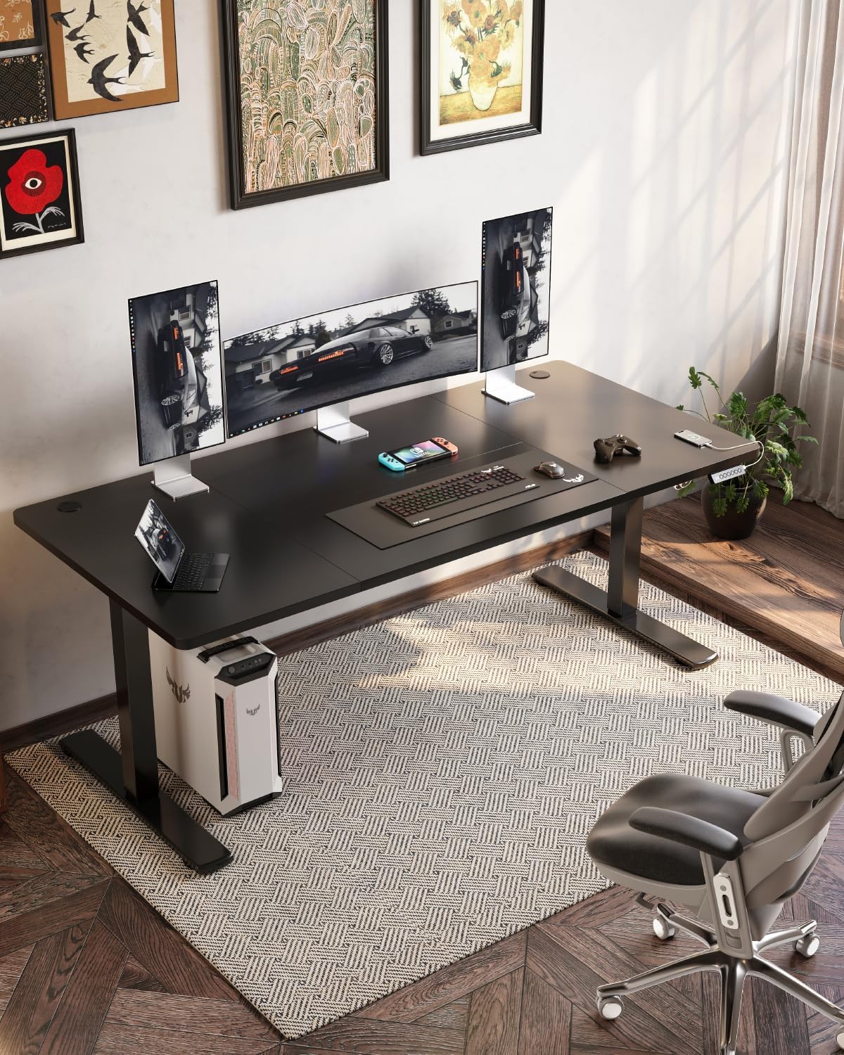 The Height Adjustable Desk Electric Stand-Up Desk is designed to provide ergonomic comfort, modern functionality, and productivity for both office and home environments. With electric height adjustment, it allows users to switch seamlessly between sitting and standing positions, promoting better posture and reducing fatigue during long working hours.