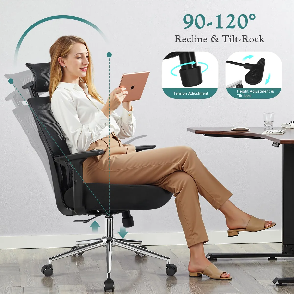 - Adjustable Headrest: Enjoy personalized neck and head support with the adjustable headrest. Whether you’re engaged in deep focus or taking a moment to relax, this feature ensures optimal comfort.