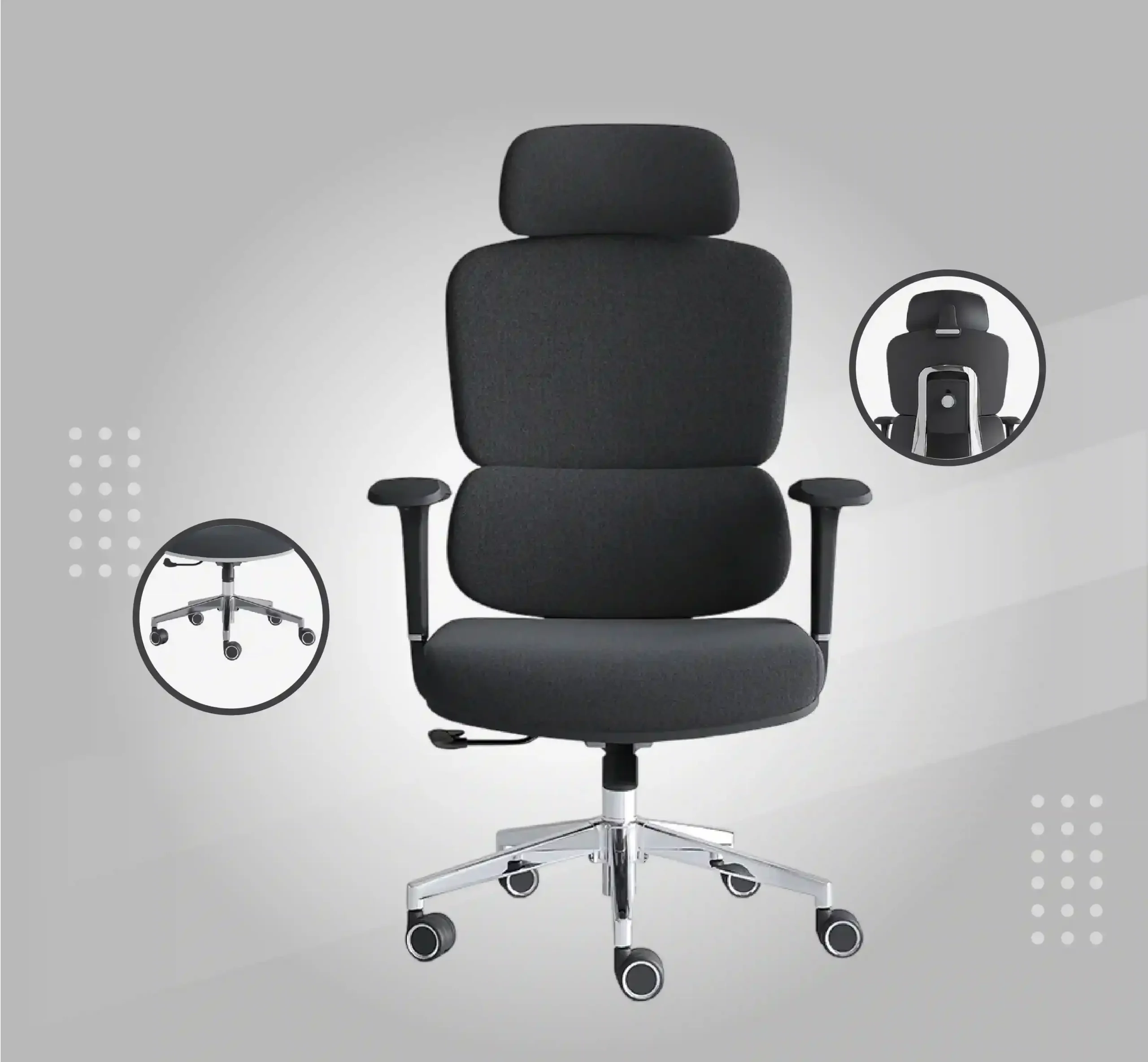 The high backrest is shaped to follow the natural curve of your spine, providing full support from your lower back to your shoulders. It promotes a healthy sitting posture and reduces tension on your neck and back. The built-in lumbar support keeps your spine aligned, helping you stay productive without discomfort during long working hours.