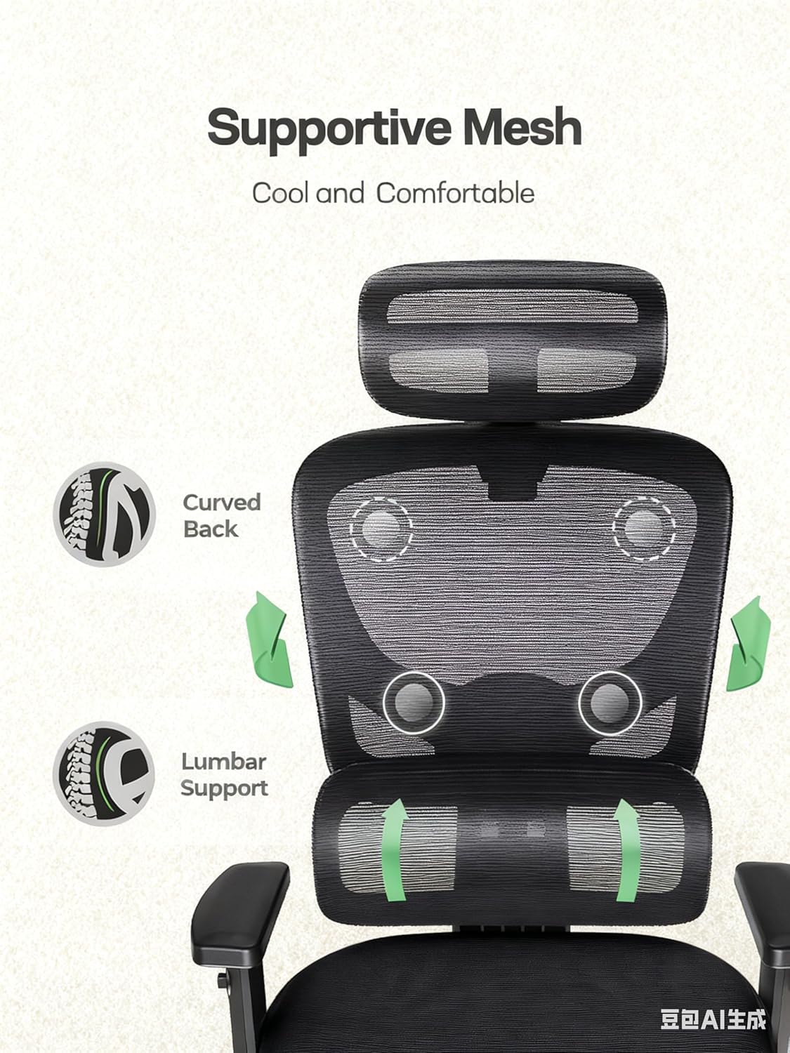 - Optimal Support: The ergonomic design of this chair cradles your body, providing optimal support to key areas such as the lumbar region, back, and neck. Transition seamlessly between tasks with the assurance of sustained comfort.