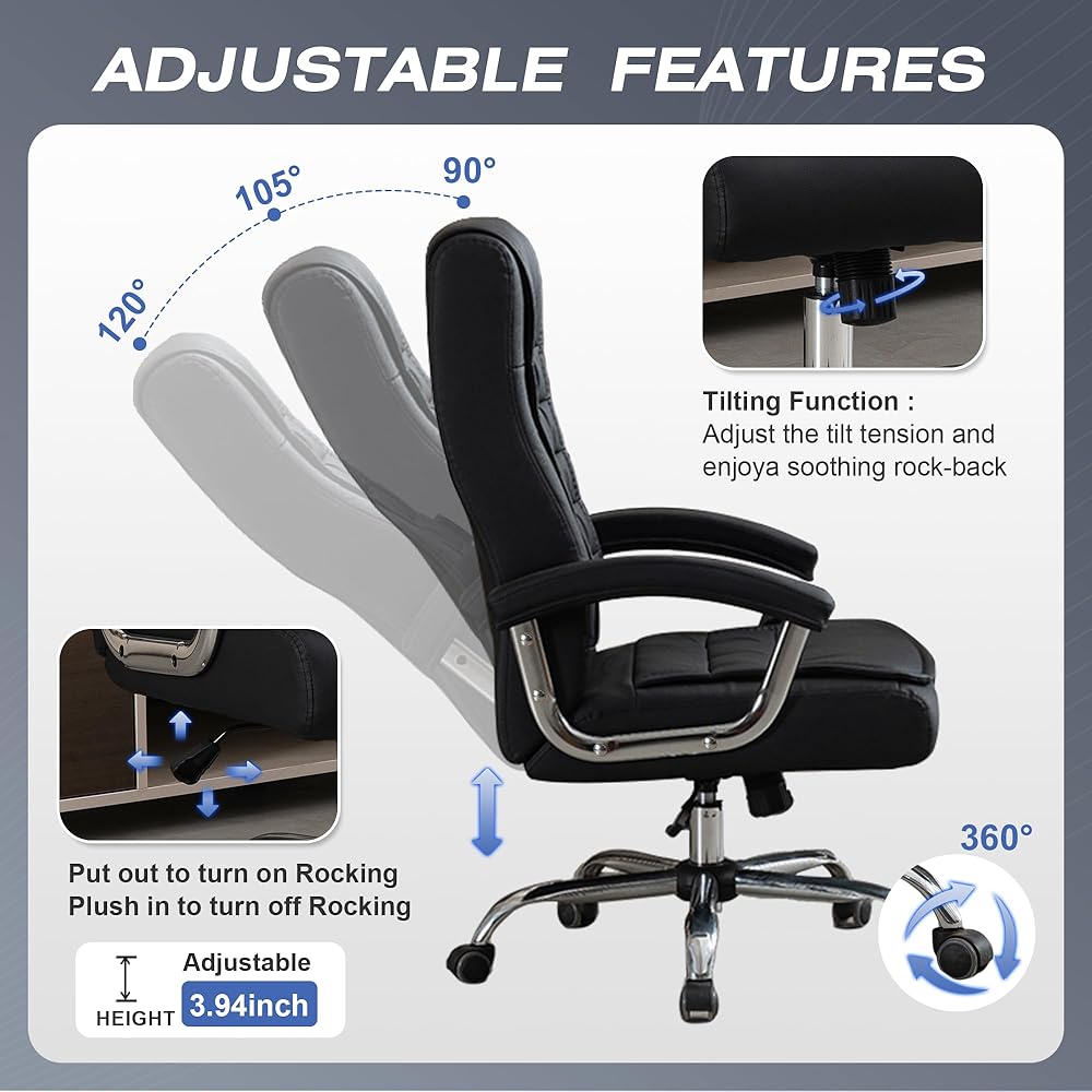 💼 Executive Style: Elevate your office aesthetic with the chair’s sophisticated design. Premium leather upholstery, sleek contours, and refined detailing make this chair a statement piece in any executive space.