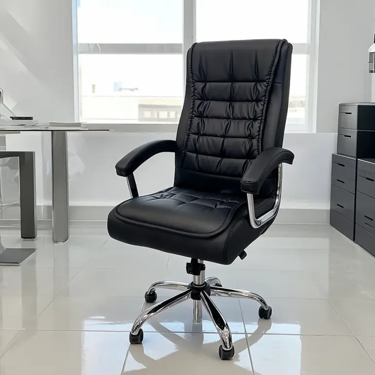 Crafted with high-quality leather upholstery, this executive office seat offers a smooth, soft-touch surface that provides both comfort and elegance. The premium leather finish is easy to clean, resistant to wear, and designed to maintain its sophisticated appearance even with daily use. Its sleek executive look adds a touch of class and professionalism to any office environment.