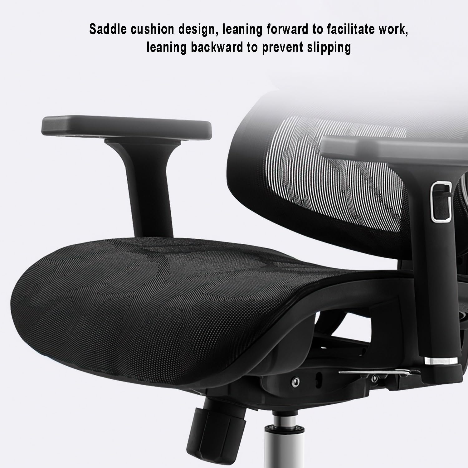 The high-density foam seat provides firm yet comfortable support, distributing weight evenly to prevent pressure points. Its resilient cushioning maintains its shape over time, offering long-lasting comfort for all-day use. This balance of softness and support ensures both comfort and productivity.