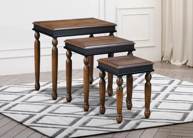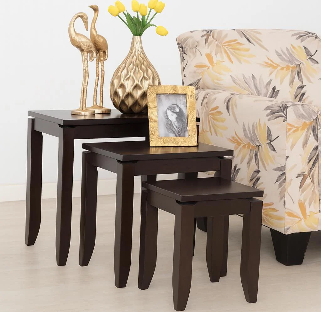 The Mahogany Nest Coffee Tables Set of 3 – Brown is the perfect combination of style, flexibility, and durability, making it an excellent choice for anyone looking to enhance their space with functional yet sophisticated furniture.