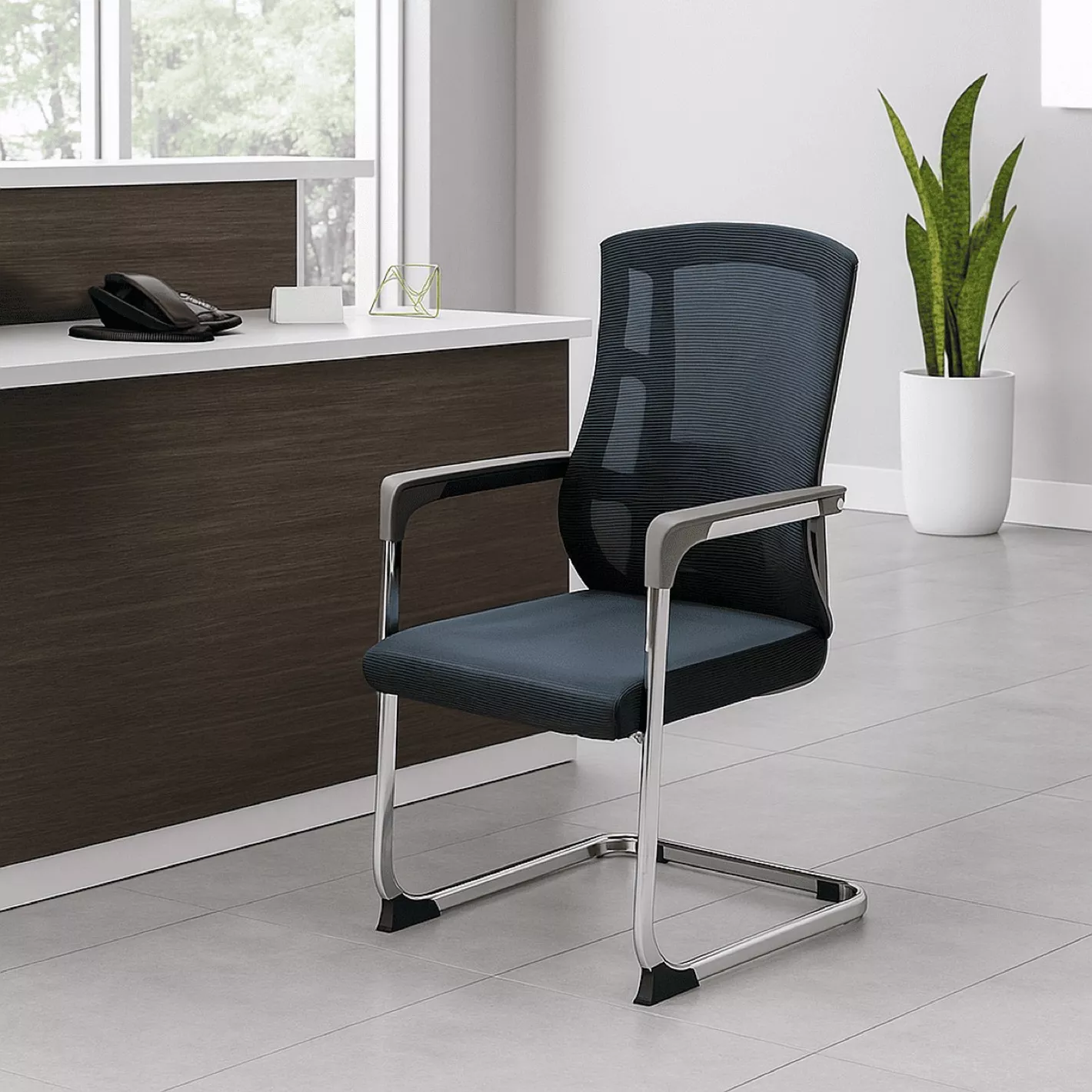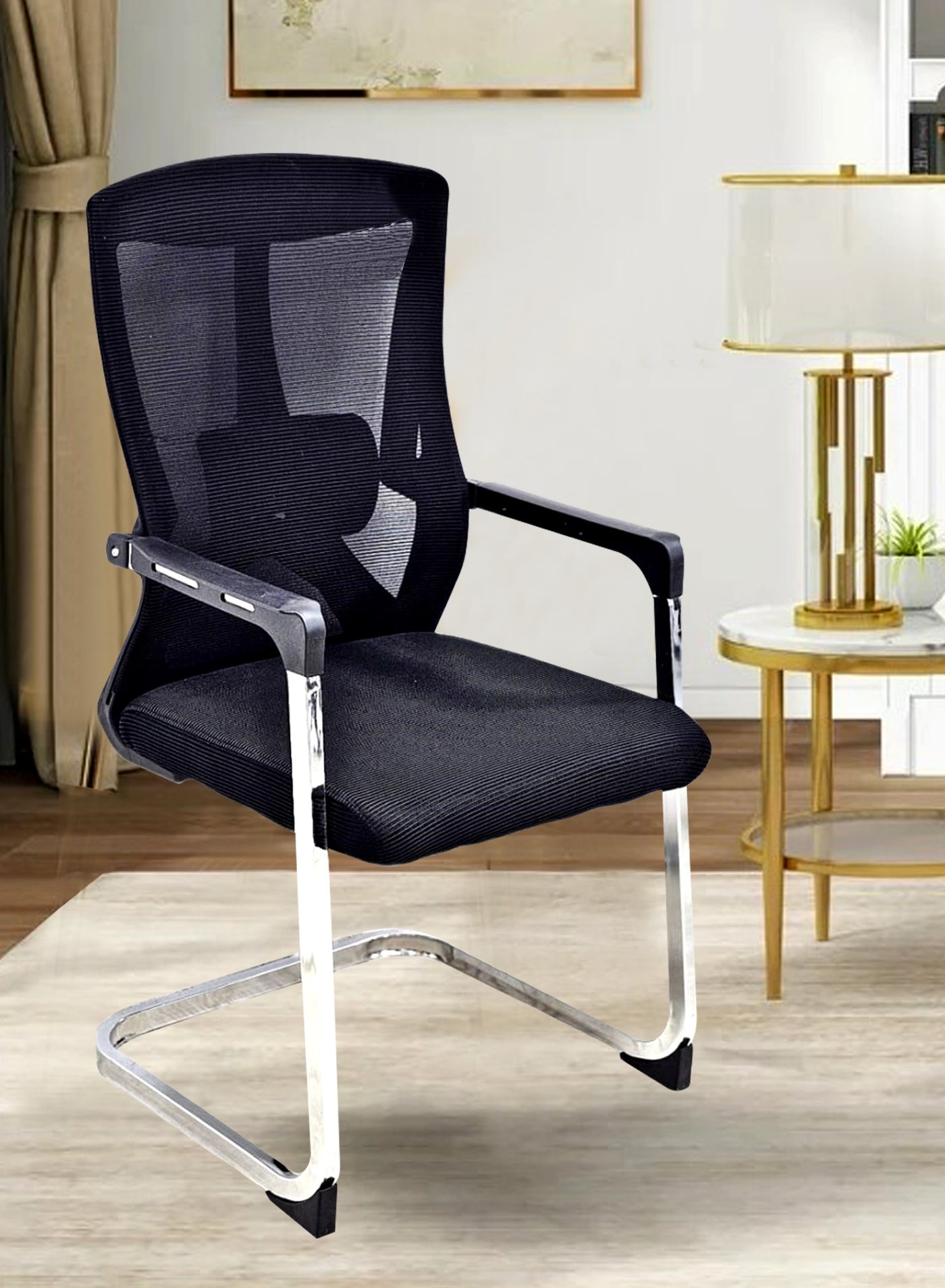 The chair’s compact and contemporary design allows it to blend seamlessly with modern office interiors. Whether placed across an executive desk, around a conference table, or in a waiting area, it enhances the workspace with a clean, professional look while ensuring guests feel welcomed and comfortable.