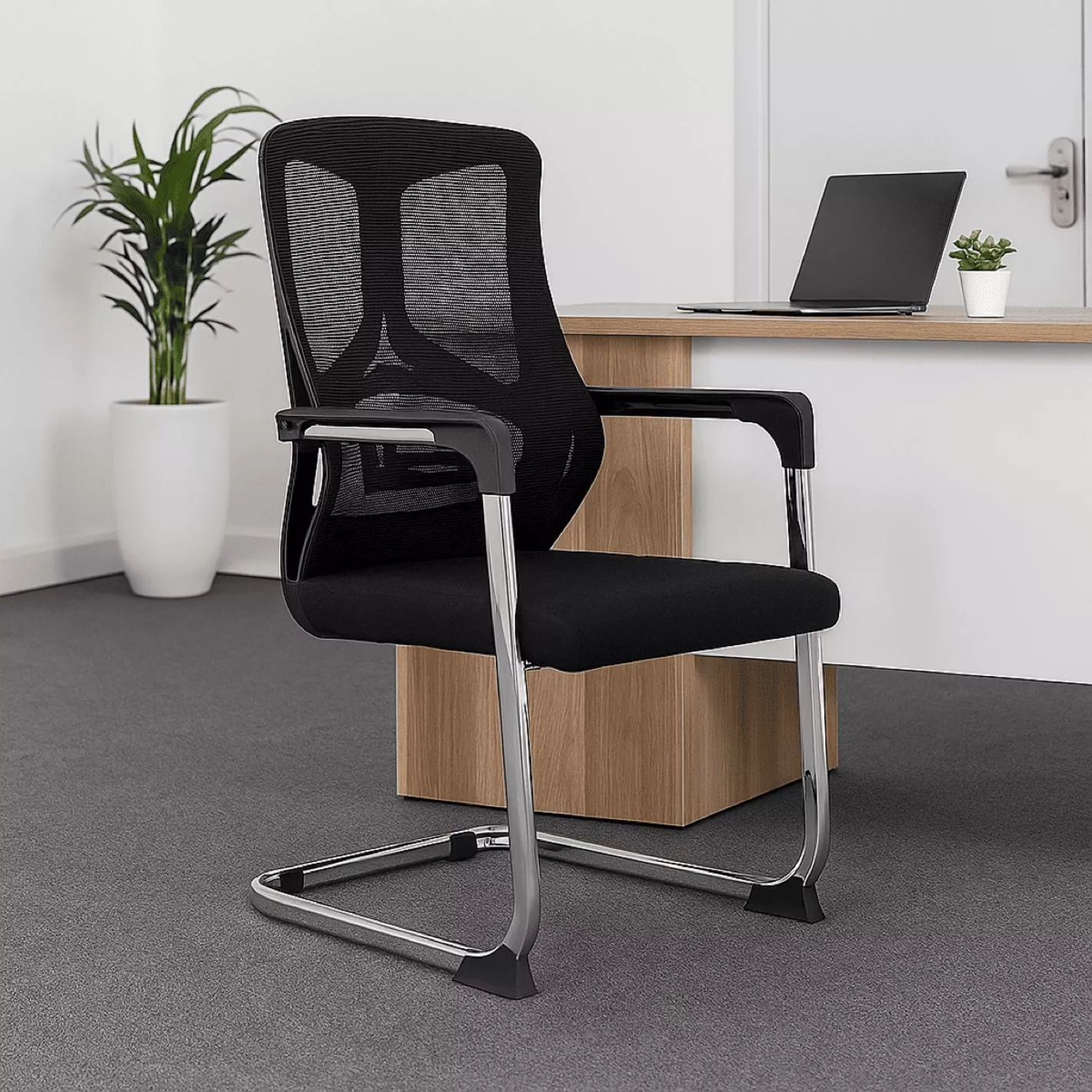 Built with a durable metal or chrome frame, the Mesh Office Guest Chair With Arms provides strong stability and long-lasting performance. The sturdy base is designed for daily office use, while non-slip floor caps help protect flooring and prevent unwanted movement.