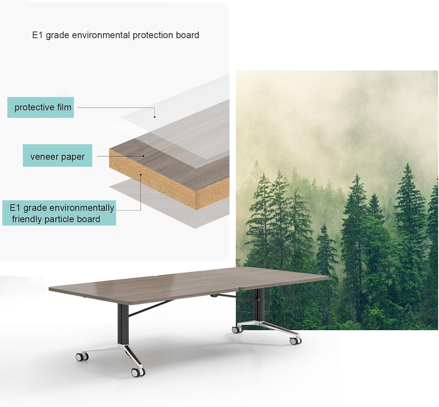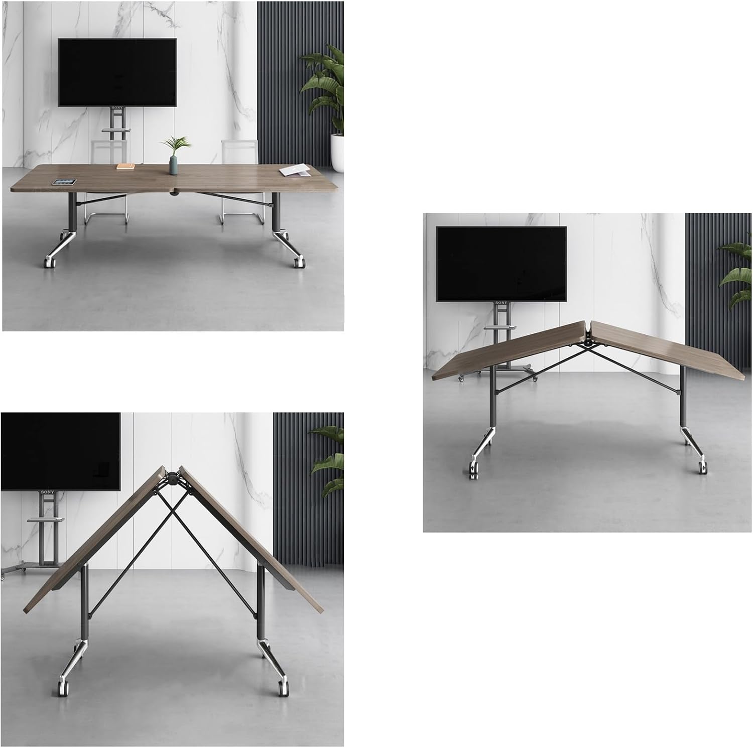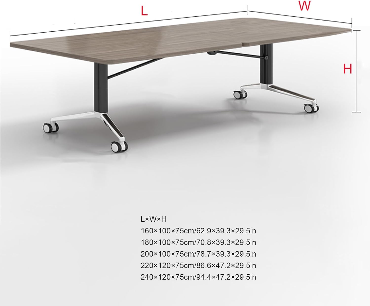 Equipped with heavy-duty caster wheels, the table moves effortlessly across office floors. The lockable wheels ensure stability and safety when the table is in use, providing a secure and reliable conference setup.