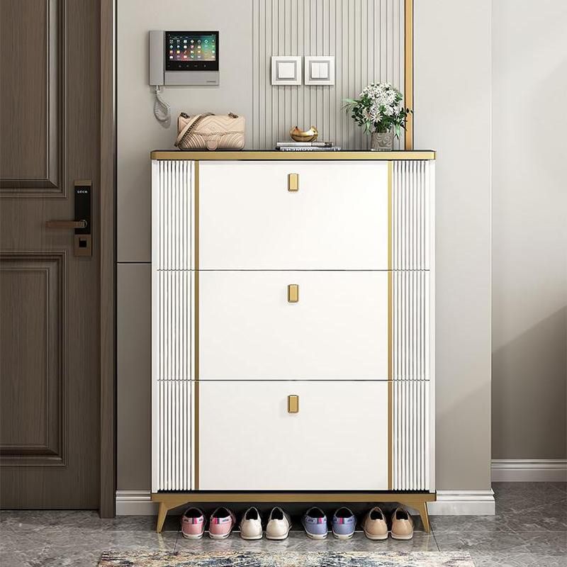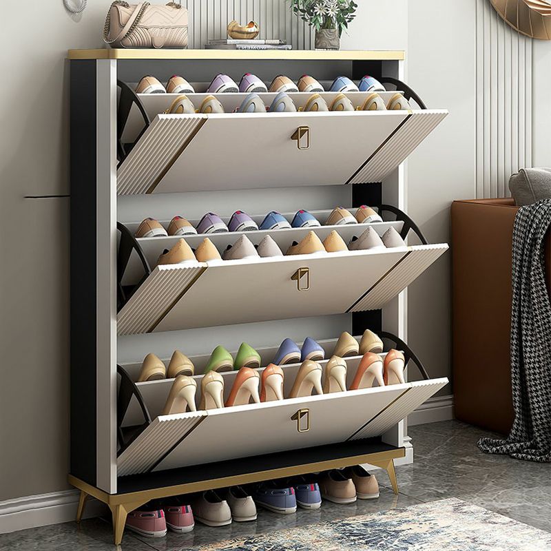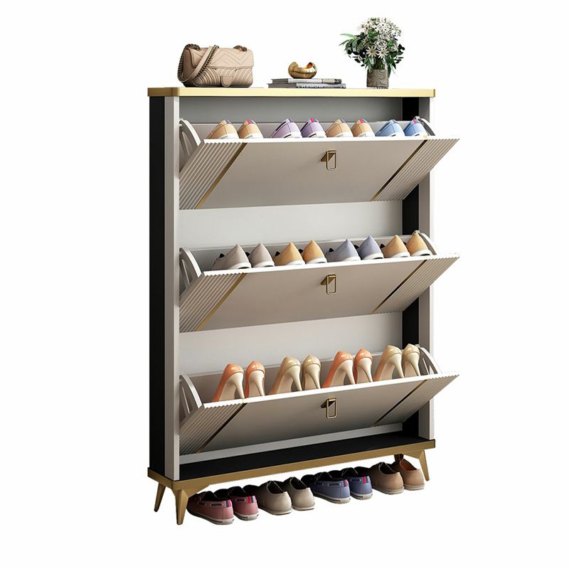 This shoe cabinet is built to hold multiple pairs of shoes while maintaining a compact footprint. It features multiple tiers and compartments, ideal for organizing sneakers, heels, sandals, and formal shoes. Some models include tilting drawers or adjustable shelves, allowing you to store footwear of different sizes conveniently.