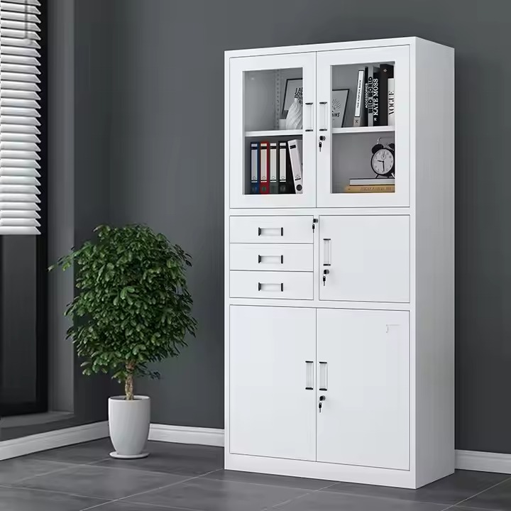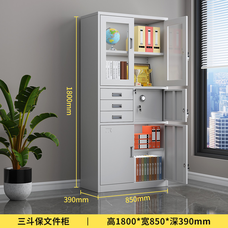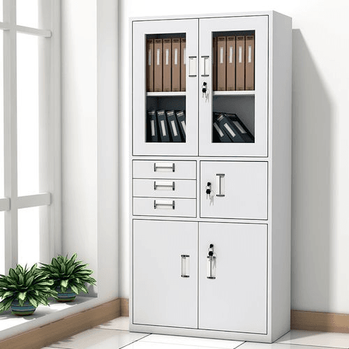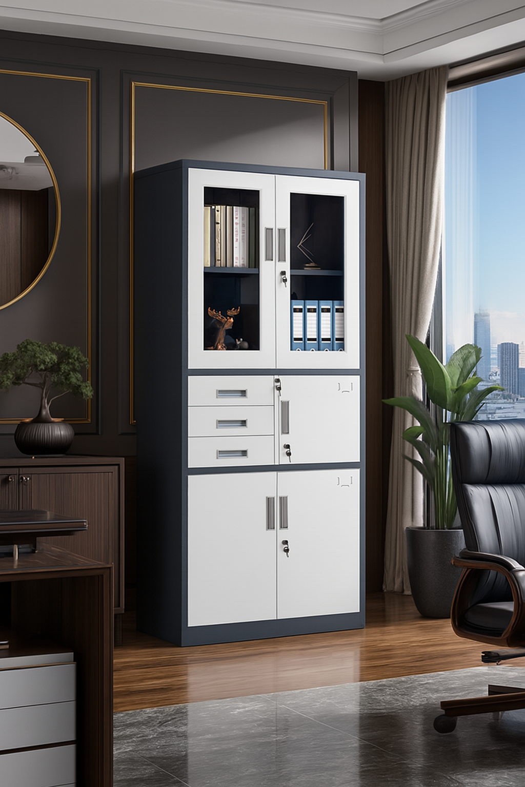 The interior offers ample storage space, often equipped with adjustable shelves to accommodate files, office supplies, storage boxes, and equipment of various sizes.