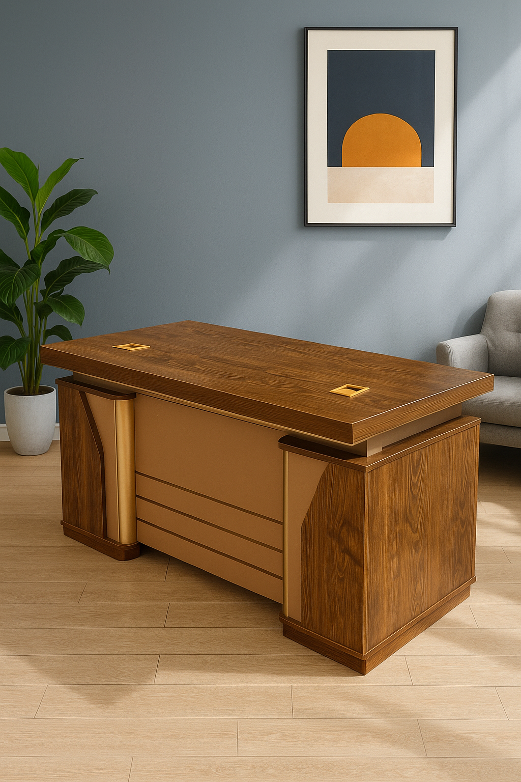 The Office Table With Lockable Drawers features a sleek, contemporary design that complements any office or home setup. Its clean lines and smooth finish make it suitable for both professional and casual work environments. The wide tabletop provides ample space for laptops, monitors, documents, and stationery — ensuring an uncluttered workspace for improved productivity.