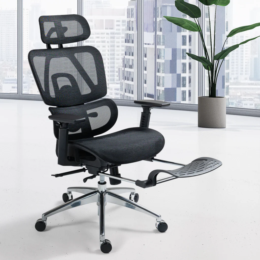 Constructed with a strong metal base and reinforced frame, the Orthopedic Office Chair With Footrest is built to withstand daily office use. Its modern and professional design complements executive offices, corporate workspaces, and home offices.